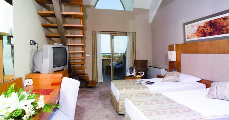 Standart Oda, 1 çift kişilik yatak, 1 tek kişilik yatak, Kanape, Televizyon, Uydu sistemi, Merkezi klima, Banyo (Duş veya Küvvet), Saç kurutma makinesi, Direkt telefon, Minibar, Kasa, Halı zemin, Kartlı kapı sistemi, Duman dedektörü, Bagaj kutusu, Balkon.240 adet Aile odası mevcuttur.6 adet balayı odası ve Havuz manzaralı 58 adet standart ve Aile odaları bulunmaktadır. 34 adet Deluxe Suite odaları mevcuttur.Engelli odası; 2 adet tek yatak, Kanape, Televizyon, Uydu sistemi, Merkezi klima, Banyo&Duş, Saç kurutma makinesi, Direkt telefon, Mini bar, Kasa, Halı zemin, Kartlı kapı sistemi, Duman dedektörü, Bagaj kutusu, Balkon.