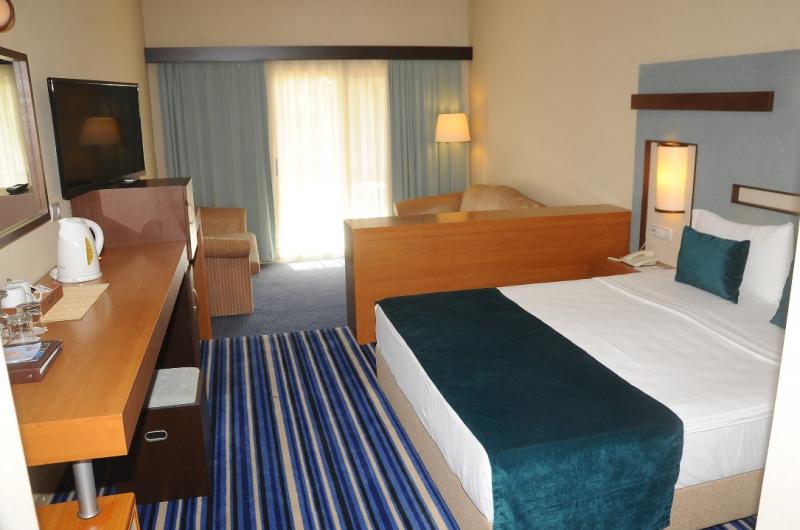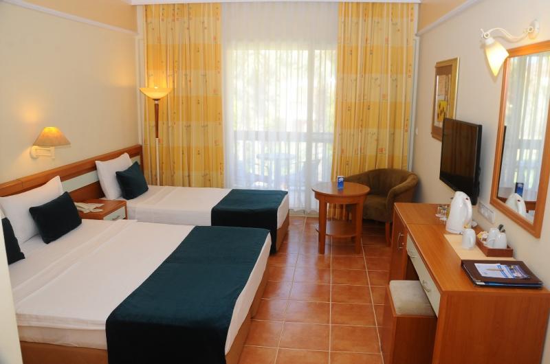 Double Oda :Kartlı kapı kilit sistemi, banyoda küvet, merkezi sistem klima, Wifi (ücretli), uydu TV, minibar (ücretli), çay kahve olanağı, saç kurutma makinesi, güvenlik kasası (ücretli) ve direkt hatlı telefon mevcuttur. Tamamı balkonlu olan odalar, bahçe ve/veya havuz manzarasına sahiptir. Zemin halı olup; maksimum 2+1 yada 3 kişi konaklayabilir.