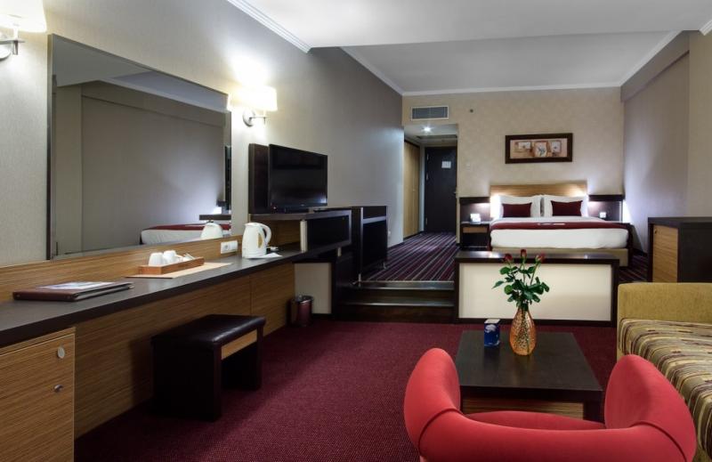 Large Double Oda :World Double Odalarla aynı özelliklere sahip olup; daha geniştir ve ortasında odayı ikiye bölen seperasyon mevcuttur. Zemin halı olup; maksimum 2+2 yada 3+1 kişi konaklayabilir.