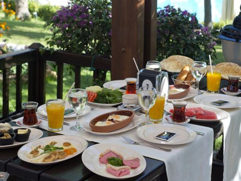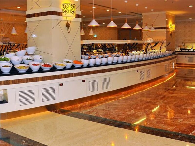 Sabah, öğle ve akşam açık büfe yemekler. Tesisin belirlemiş olduğu markalar dahilinde bazı yerli alkollü ve alkolsüz içecekler