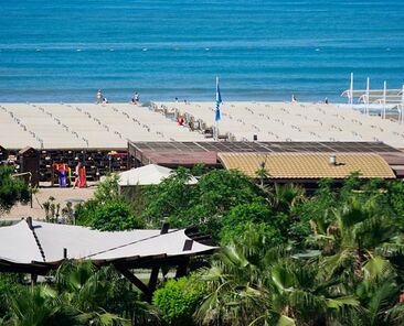 Plaj: Mavi bayrak sertifikalı, soyunma kabinli, duşlu özel kum plaj