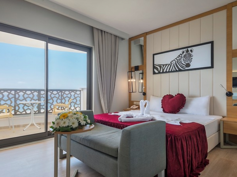 Standart oda(Deniz Manzaralı),Oda büyüklüğü: 35 m² 1 Çift Kişilik+1 Tek Kişilik Yatak veya 3 Tek Kişilik Yatak mevcuttur, Ahşap/Parke Zemin, Klima, Kurutucu, Emanet Kasası, Gardırop/Dolap, Makyaj Masası, Düz Ekran TV, Kablolu Yayın Kanalları, Telefon,