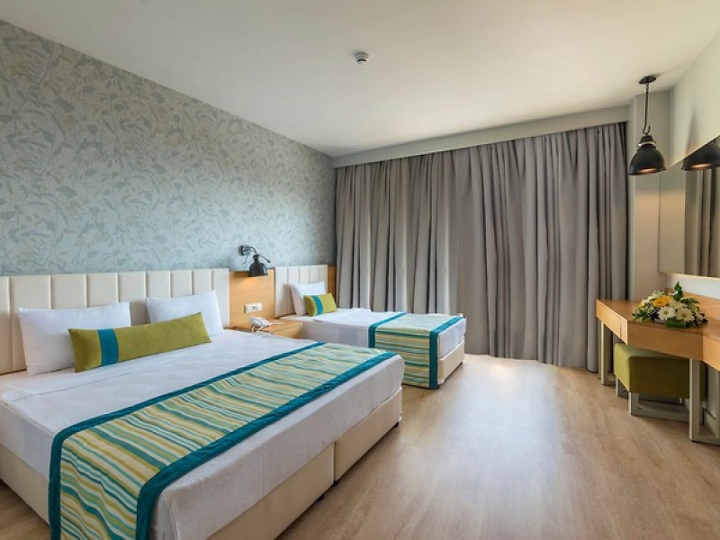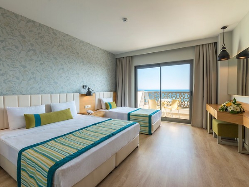 Standart oda(Kısmi deniz Manzaralı),Oda büyüklüğü: 32 m² 1 Çift Kişilik+1 Tek Kişilik Yatak veya 3 Tek Kişilik Yatak mevcuttur, Ahşap/Parke Zemin, Klima, Kurutucu, Emanet Kasası, Gardırop/Dolap, Makyaj Masası, Düz Ekran TV, Kablolu Yayın Kanalları, Telefon,