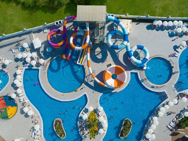 Tesisin açık yüzme havuzu, kapalı yüzme havuzu, çocuk havuzu ve 6 adet su kaydırağı ile suyun keyfini çıkarabilir; animasyon ve aktivite imkanları ile eğlenceli bir tatil geçirebilirsiniz.