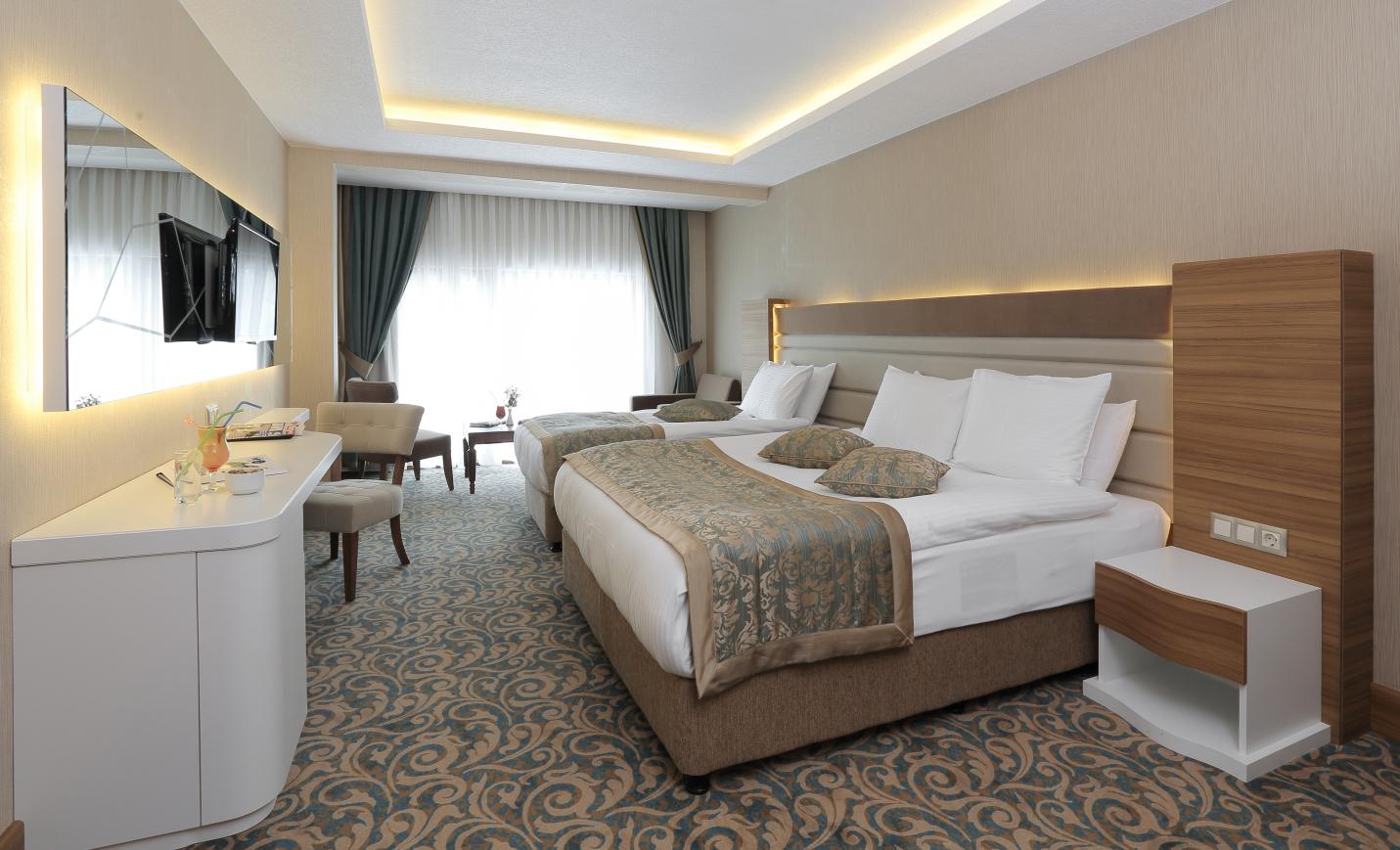Family Room : Ara kapılı, 1 yatak odası ( 2 french bed + 1 tekli yatak) + 1 oturma odası (oturma grubu ve çift kişilik açılır kanepe) ve 1 banyodan oluşur.