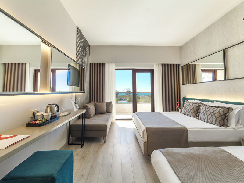 Club Standart oda 402 adet olup 24-28 m2 dir. Çift kişilik yatak, tek kişilik yatak ve çekyat veya iki adet tek kişilik yatak ve çekyat bulunmaktadır.Max. 2 yetişkin + 2 çocuk veya 3 yetişkin + 1 çocuk konaklama