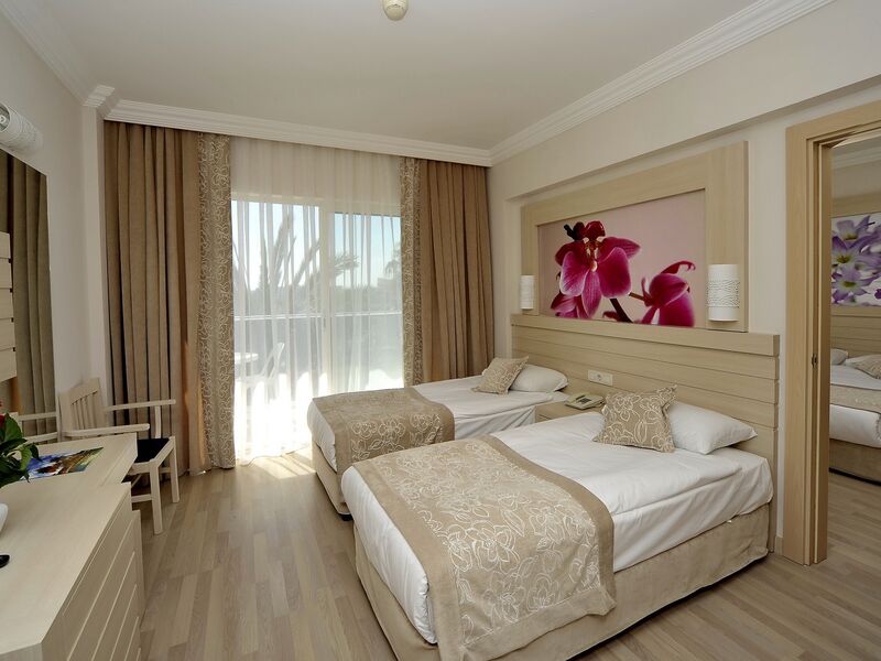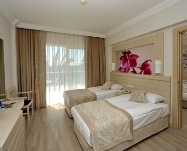 Aile Odaları: Aile odaları iki odadan oluşmaktadır. Ebeyen odasında 1 adet çift kişilik büyük yatak, çocuk odasında 2 adet tek kişilik yatak bulunmaktadır. Bu iki ayrı odanın ara kapı ile birbirine bağlandığı aile odaları 40 m2 olup standart odalar ile aynı donanımlara ilaveten; tek banyo, tek minibar, her iki odada LCD TV, her iki odada klima, Her İki odadan balkon seçeneği bulunmaktadır. Otelde toplam 33 adet aile odamızın tamamına yakını kısmen veya direkt olarak deniz görmektedir.