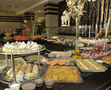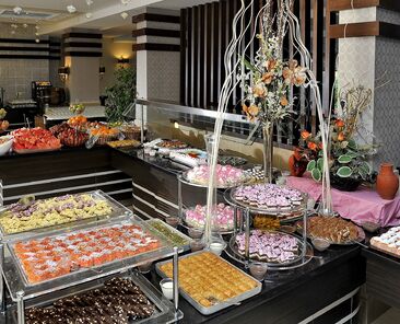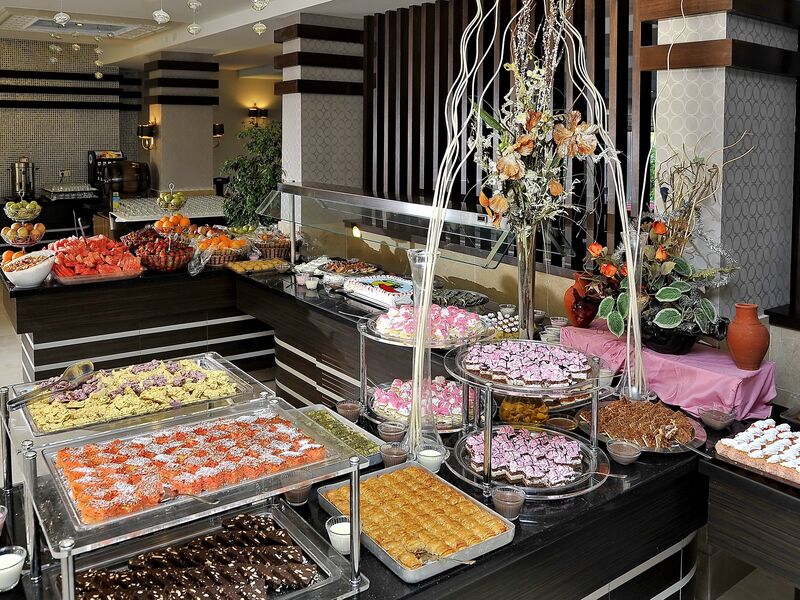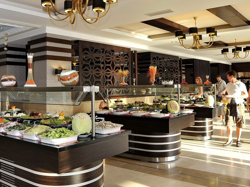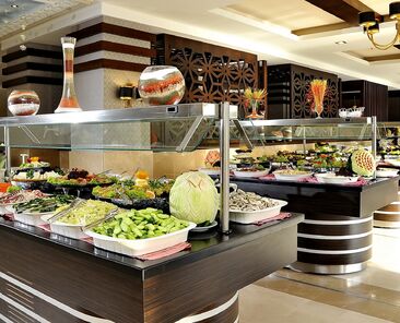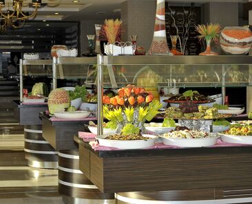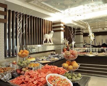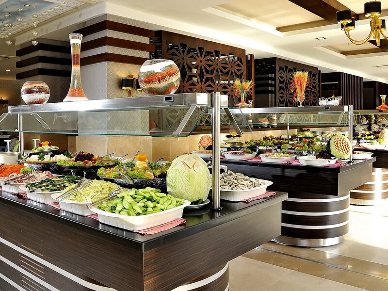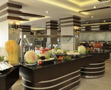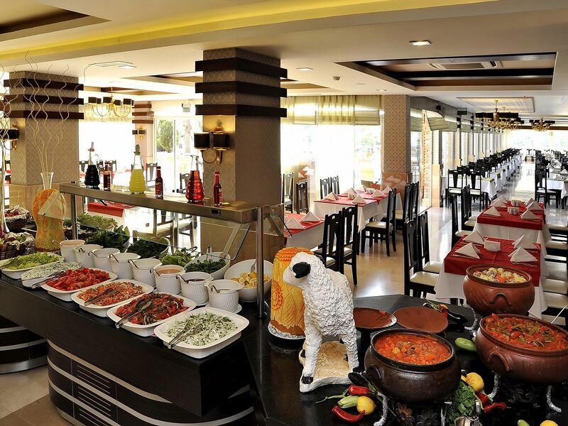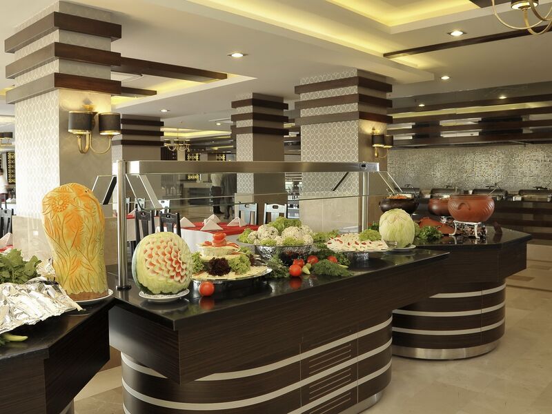 Sabah, öğle ve akşam yemekleri Açık büfe olarak sunulmaktadır.Otelin belirlemiş olduğu markalar dahilinde bazı yerli alkollü ve alkolsüz içecekler 10:00-24:00 arası ücretsiz olarak sunulmaktadır.