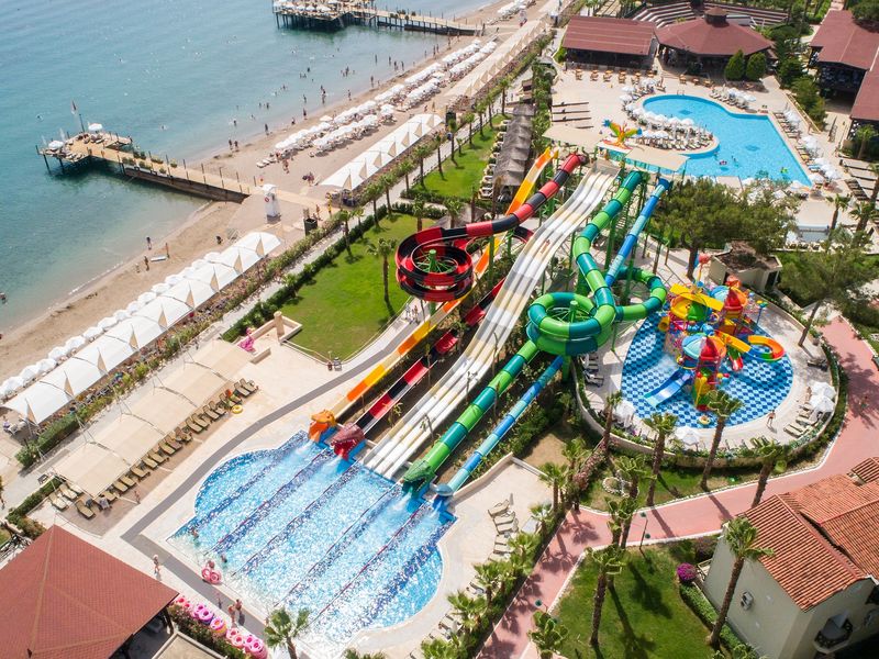 Farklı sıcak mimarisi ile ön plana çıkan tesisimiz, sahilinde 900 m uzunluğunda ince çakıl ve kum karışık özel plajı, toplamda 1044 m² alana sahip çeşitli büyüklükte havuzları ve aquaparkı ile özellikle çocuklu aileler için adeta bir tatil cennetidir.
