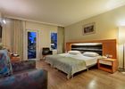 King Suite: 1 adettir. Özel ve farklı dekore edilmiş 1 yatak odası ve 1 oturma odası, duşlu banyo ve standart odaların tüm özellikleri mevcuttur. Maksimum kapasite : 3 kişi Oda ölçüsü : 55 m²