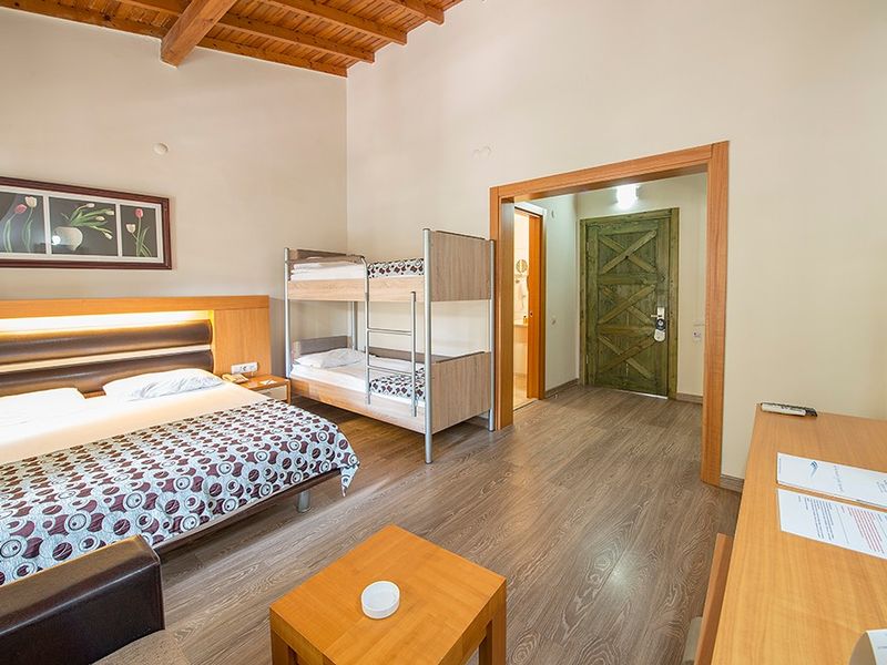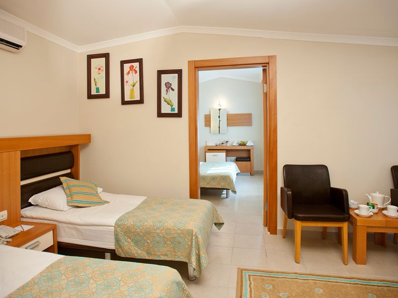 Aile Odaları: 103 adettir. 2 yatak odalı (ara kapılı), 1 banyo ve standart odaların tüm özellikleri mevcuttur.