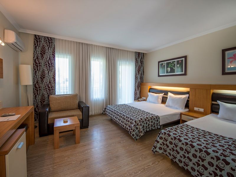 Tüm odalarda; split klima, kasa, uydu yayınlı LCD-TV ve müzik yayını, mini bar, zeminde laminant parke, balkon, direkt telefon, kartlı kilit sistemi, yangın ihbar ve söndürme sistemi mevcuttur. Banyolarda; duş, telefon ve fön mevcut olup, elektrik 220 volttur. Odalarımızın 37 adedi deniz manzaralıdır. Sigara içmeyen konuklarımız ve bedensel engelli konuklarımız için özel odalarımız mevcuttur.