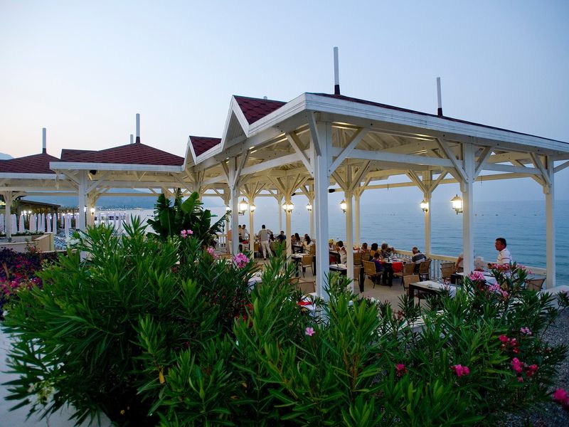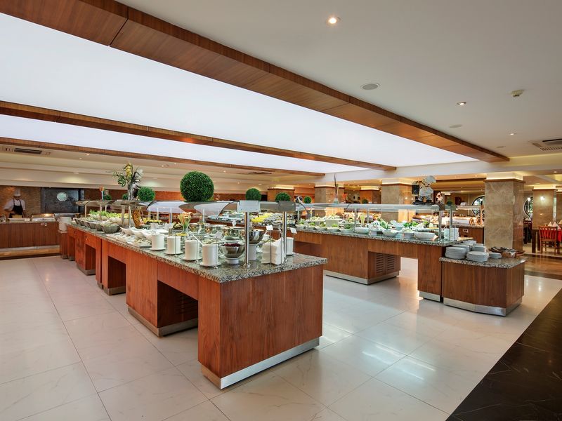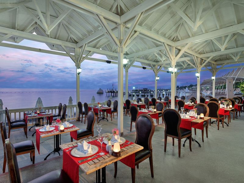 Türk konukseverliğinin tüm özelliklerini yansıtan ve konuklarımızın tesisimizden yüzde yüz mutlu olarak ayrılmalarını sağlayacak, özenle hazırladığımız, “Ultimate All Inclusive” konseptimiz; konuklarımıza girişte sunduğumuz cezerye ve geleneksel soğuk saray şerbeti ile başlamakta ve 24 saat boyunca zengin yemek ve içki çeşitleriyle devam etmektedir.