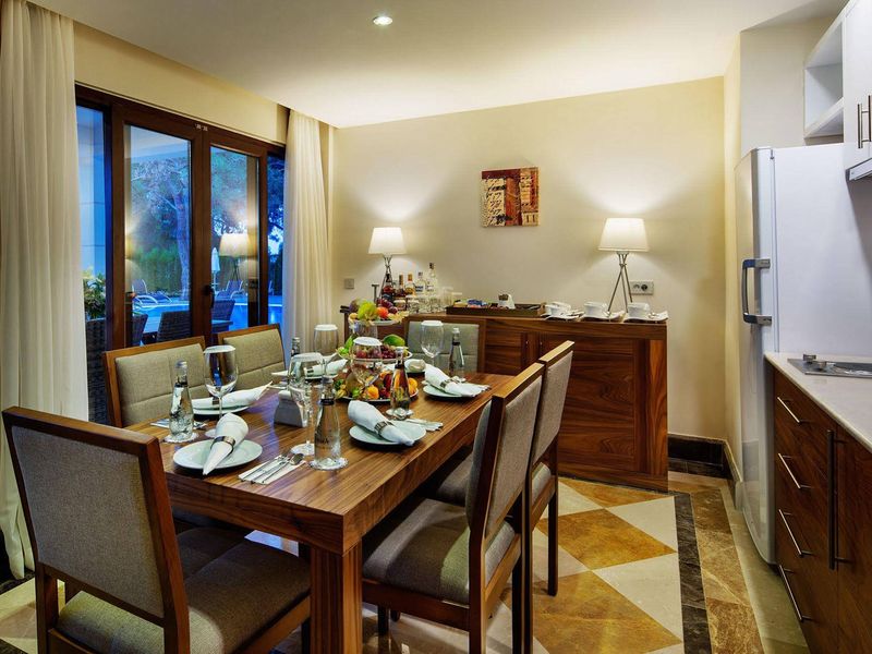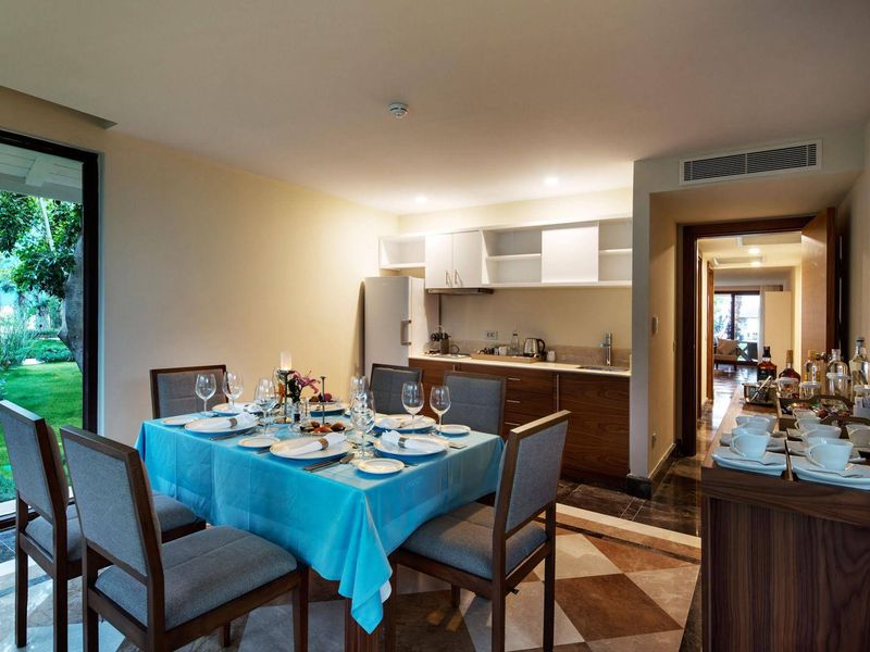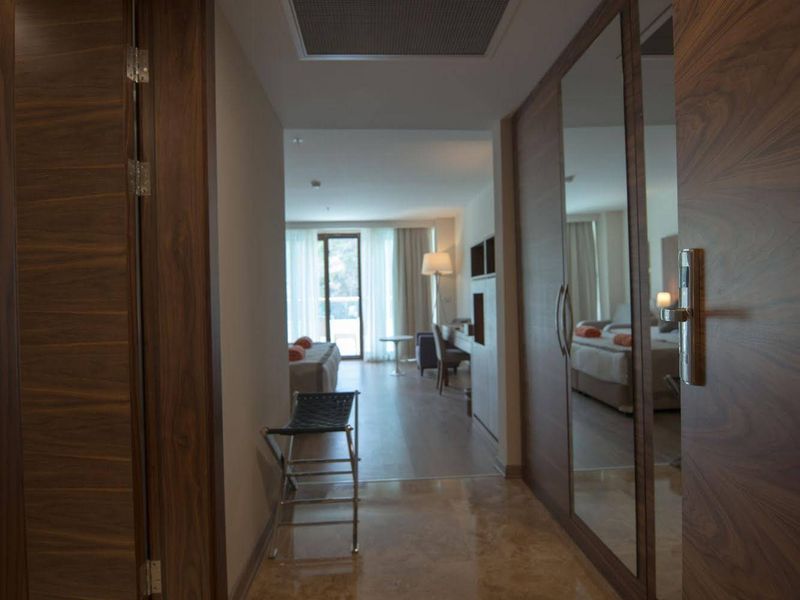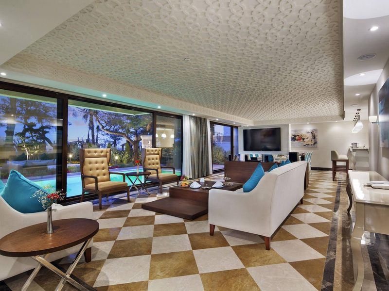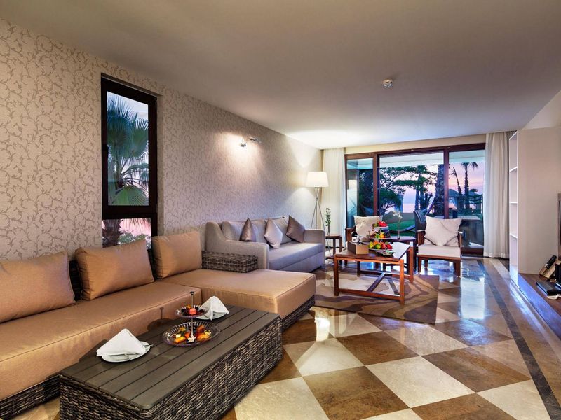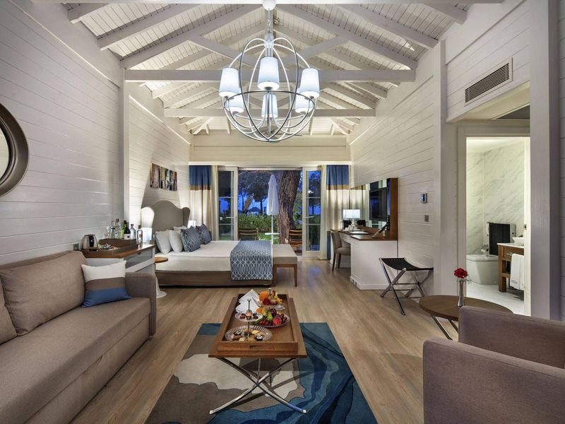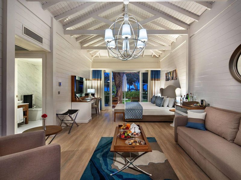 Grand Deluxe Beachfront Suites (2 adet); Çam ormanının içerisinde ve direkt sahilde bulunan Grand Deluxe Beachfront Suite'lerimizde;2 yatak odası, 1 giyinme odası, 1 oturma odası, 1 yemek salonu, mutfak köşesi, 2 banyo, 3 LED televizyon ve çok geniş 2 teras bulunmaktadır. Bu suitelerimizin kendine özel havuzu mevcuttur. Özel "butler" hizmeti verilmektedir. Suite'lerimiz direkt deniz ve havuz manzaralıdırlar.