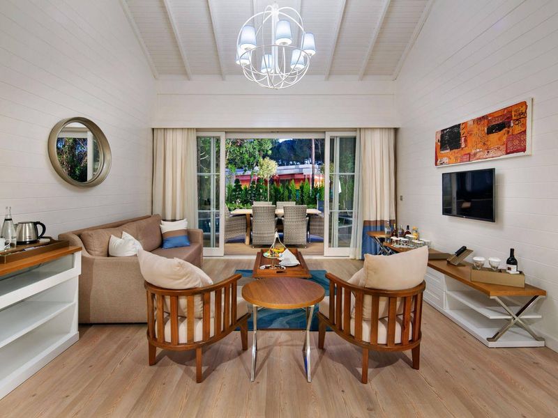 Lagoon Beachfront Villas (8 adet) ; Çam ormanının içerisinde bulunan Lagoon Beachfront Villa'larımızda; 1 yatak odası, 1 banyo, 1 sofa ve 1 LED televizyon bulunmaktadır. Çift teraslı olan bu villalarımız sahil tarafında, direkt deniz ve havuz manzarasına sahiptirler.