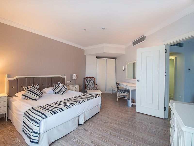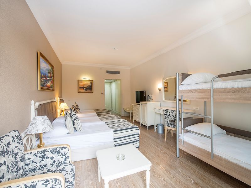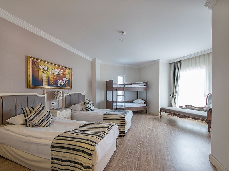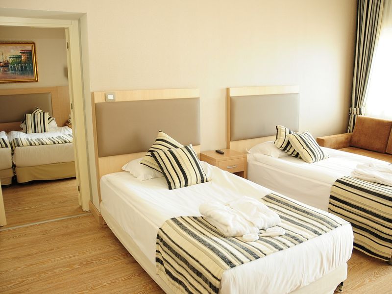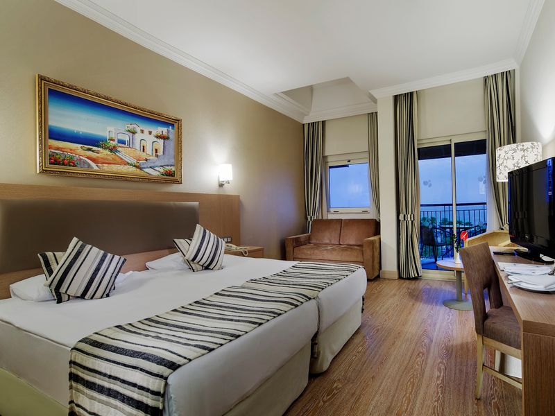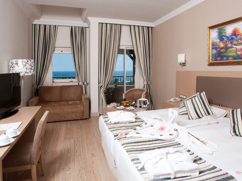 Tüm odalarda; merkezi klima, kasa, uydu TV ve müzik yayını, mini bar, zeminde parke, balkonlu veya teraslı, direkt telefon, kartlı kilit sistemi, kablosuz internet bağlantısı, yangın ihbar ve söndürme sistemi, banyolarda duşa kabin / WC, telefon ve fön mevcut olup, elektrik 220 volttur. Ayrıca bedensel engelli konuklarımız için 6 adet özel odalarımız mevcuttur. Çocuklarımız için (4–12 yaş) özel çocuk havuzu ve aqua parkı, mini kulüp ve oyun alanları mevcuttur. Kapalı havuzda 01.Nisan – 31.Ekim tarihleri arası ısıtma yapılmamaktadır.