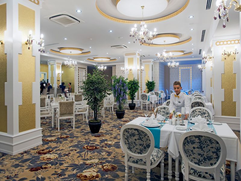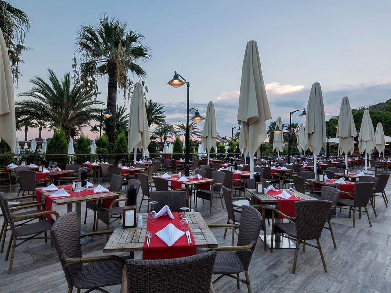 Türk konukseverliğinin tüm özelliklerini yansıtan ve konuklarımızın otelimizden yüzde yüz mutlu olarak ayrılmalarını sağlayacak, özenle hazırladığımız, “Ultimate All Inclusive” konseptimiz; konuklarımıza girişte sunduğumuz soğuk saray şerbeti ve cezerye ile başlamakta ve gün boyunca zengin yemek ve içki çeşitleriyle devam etmektedir.
