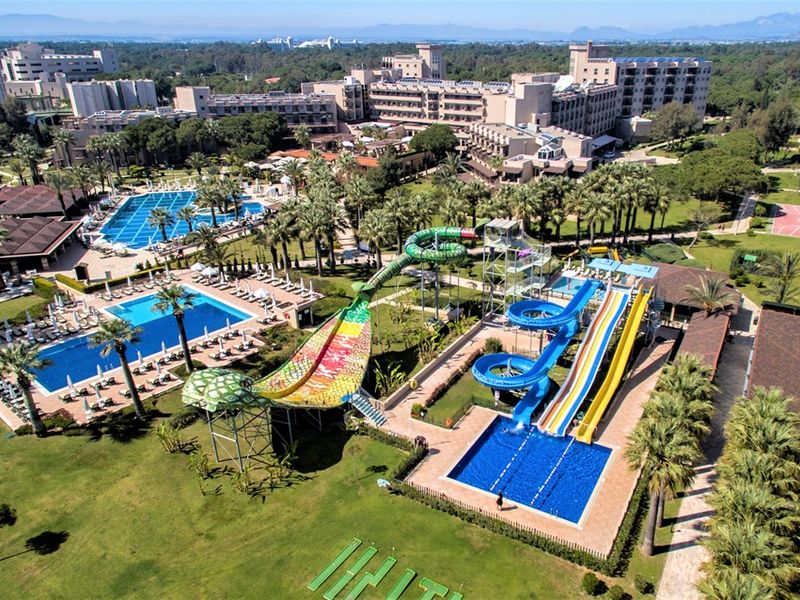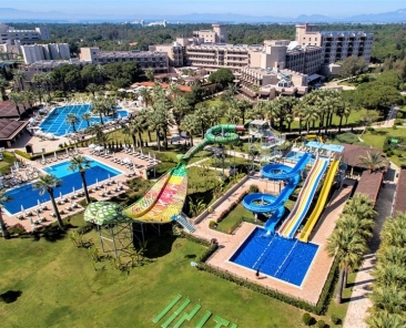 Farklı sıcak mimarisi ve olağanüstü peyzajının güzelliği ile ön plana çıkan otelimiz, sahilinde 300 m uzunluğunda kumlu özel plajı, çeşitli büyüklükte havuzları ve aquaparkı ile özellikle çocuklu aileler için adeta bir tatil cennetidir. 101.000 m² alanda, 5 katlı ve 3 bloklu olan otelimizde toplam 503 oda bulunmaktadır.