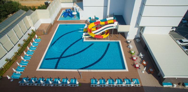 • 1 adet 350 m² ve en az 1,40 cm derinliğinde kaydıraklı tatlı su havuzunda jakuzi ve ayrıca çocuk havuzu