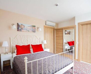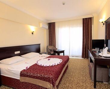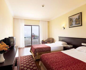 Deluxe Oda: 24 m² / Max. 3 Kişi / 1 yatak odası- 1 adet iki kişilik yatak ve 1 adet tek kişilik yatak, - split klima,laminante zemin,-mini bar, dijital kasa, 32” LCD / Satellite TV, Music Kanalı (TV ‘den yayın), su ısıtıcısı, çay ve kahve set up telefone, 1 duşlu banyo, WC, saç kurutma makinesi balcony. havlu terlik, kozmetik ayna, balkon