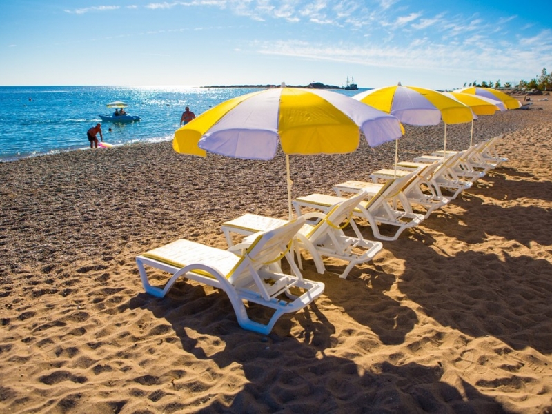 Ünlü Justinianos koyu, geniş ve kumlu plajı vardır. Ana Havuz 220 m²'dir Camelia Relax Havuz 68 m²'dir. Aqua Aktivite Havuzu 312 m² 'dir. 3 adet kaydıraklı aqua aktivite havuzu vardır.
