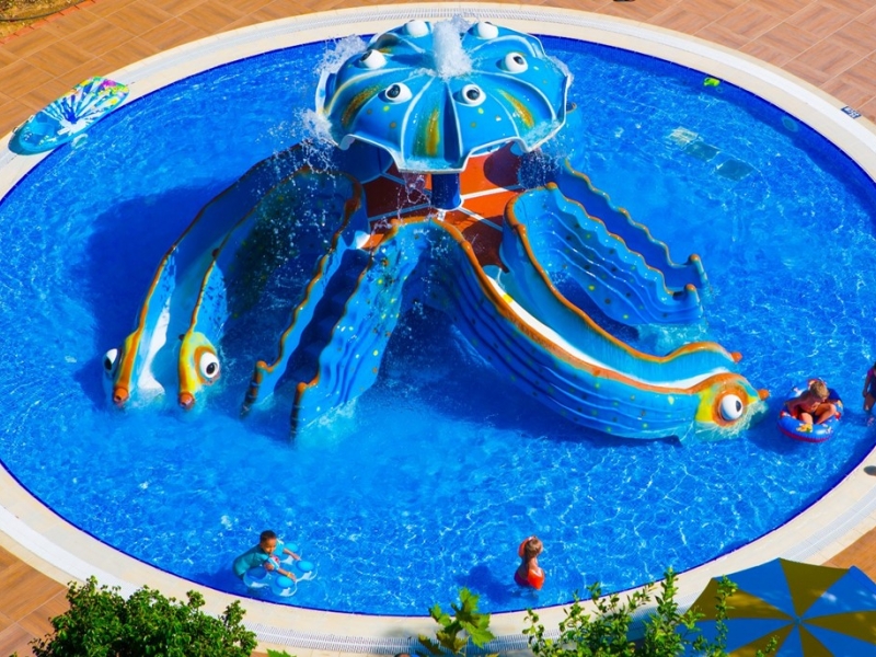 Aqua Relax Havuzu 40 m²'dir.Aqua Çocuk Havuzu 100 m²'dir. 1 set kaydırak vardır. Sahilde duş ve soyunma kabinleri mevcuttur. Havuz ve plajda yatak, havlu ve şemsiye ücretsizdir.