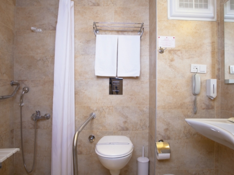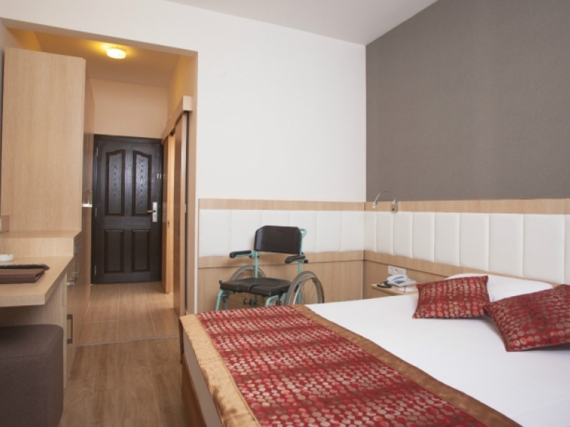 Engelli Odası,Bu oda engelli misafirler için özel olarak tasarlanmıştır. Geniş bir kapı yüksek olmayan kullanım alanları duş ve balkon bulunmaktadır. Odaya bir asansör ile ulaşılmaktadır. Lavaboya tekerlekli sandalye ile ulaşılmaktadır. Balkon için balkon kapısında bir eşik vardır. Restoran 5. kattadır ve asansörle rahatça gidilmektedir.