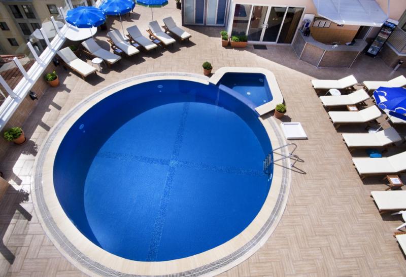 Konuklar, Türk hamamında ve masaj odasında dinlenebilir ve şezlonglarla çevrili açık yüzme havuzunda yüzebilirler.