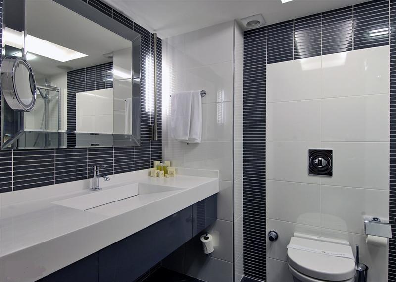 Şık bir şekilde dekore edilmiş banyolar küvet, telefon ve saç kurutma makinesi ile donatılmıştır.