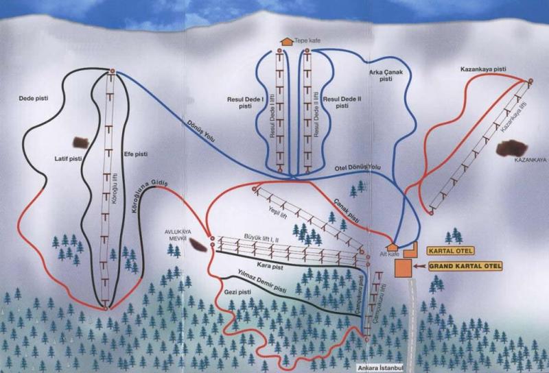 Grand Kartal Otel’de 161 Oda Bulunmaktadır. 1 Adet Kapalı Restaurant, 1 Adet Kapalı Yüzme Havuzu,1 Adet Jakuzi, Masaj/Kese, Fitness Center, Kuaför, İnternet, Wireless, Market, Oda Servisi, Doktor Bulunmaktadır. 1 Adet Kapalı Jakuzili Yüzme(Isıtmalı) Havuzu, Çocuk Havuzu Bulunmaktadır. Bilardo,Video Game, Market,Doktor, İnternet, Wireless, Kayak Kiralama ve Dersleri, Snowboard Kiralama ve Dersleri, Otel Dışındaki Cafe ve Diskoda Alınan Yiyecek ve İçecekler,Restaurant ve Lobby Kısmında Yer Alan İmport İçecekler Ücretlidir. Yemeklerde Alınan Yerli Alkollü Alkolsuz ( Belırli Şaraplar), Gece Çorbası, Lift Çıkışları, Sauna, Jakuzi, Fitness Center, Kapalı Otopark, Mini Club Ücretsizdir. Mini Club, Çocuk Havuzu, Baby Lift Mevcuttur. 12 Adet Pist, Toplam Pist Uzunluğu 20 Km,6000 Kişi/Saat Lik Lift Kapasitesi, 2 Adet Chair Lift, 6 Adet Ski Lift, 3 Adet Baby Lift, Türkiyede Bir İlk Olan Snow Park Grand Kartal Otelde Misafirlere Ücretsiz Sunulmaktadır. Grand Kartal Otel, kayak pistlerine çok yakın mesafede yer almaktadır. tesis Kış sporları için tüm imkanları sunmakta olup. Kayak ve Konaklama keyfini yüksek standartlarında ve servis kalitesiyle vermektedir. 128 adet konforlu odaya sahip
