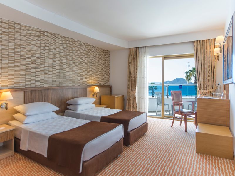 Deluxe Oda; French / TW Yatak. 1 Banyo (Küvet / Wc). Maksimum 2+1/3 kişi kapasiteli. Balkonlu / Balkonsuz. Halı zemin. Split Klima.
