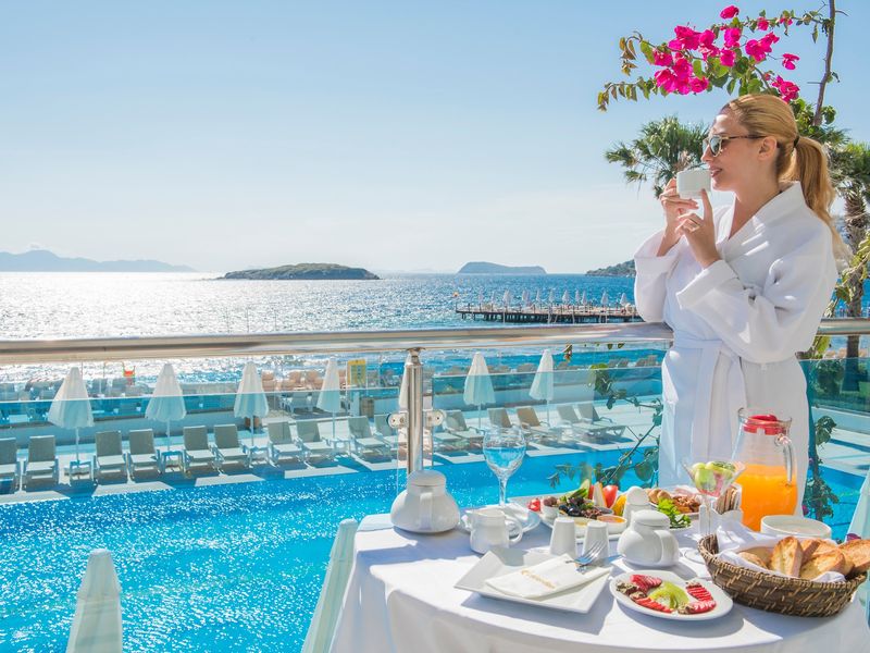 Ekstra Hizmetler : Belirli saatlerde iskele, sahil ve havuz başında çeşitli yiyecek ve içecek ikramları