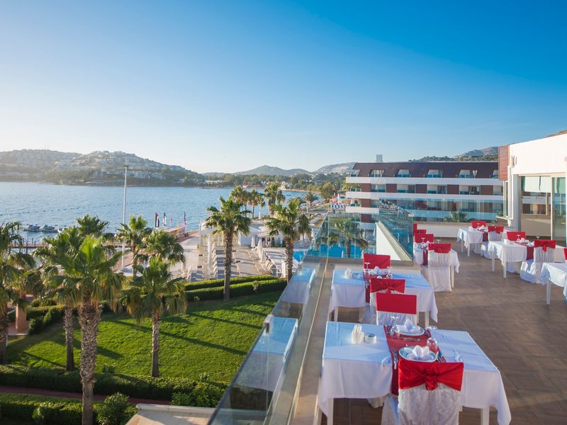 A’la Carte Restaurant: Balık ve Türk mutfakları ile haftanın 6 günü hizmet vermekte olup, 24 saat önceden rezervasyon yapılması gerekmektedir. A’ La Carte Restaurantlar’ dan, minimum 4 gün konaklayan Misafirlerimiz 1 defa ücretsiz olarak yararlanabilmektedir.