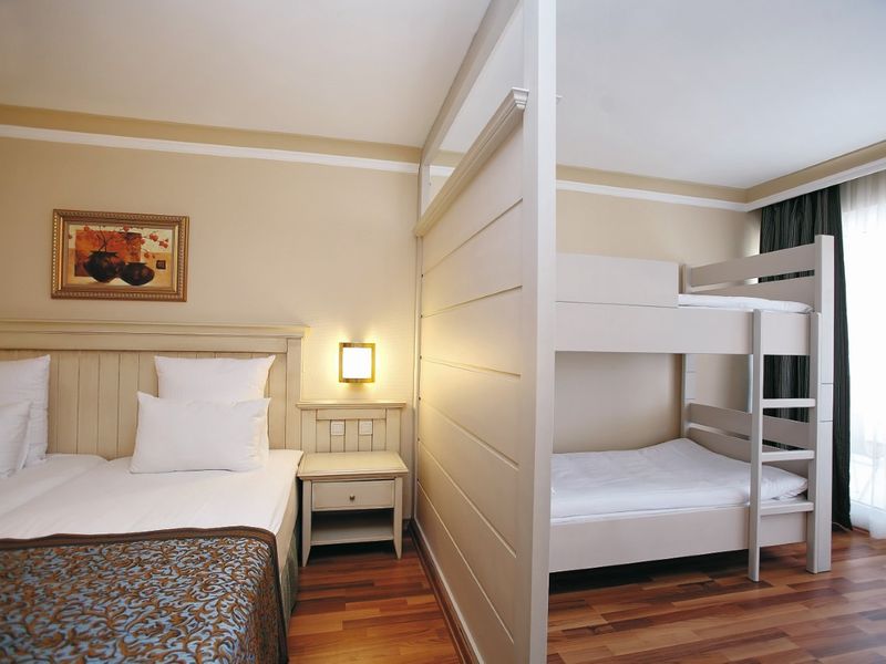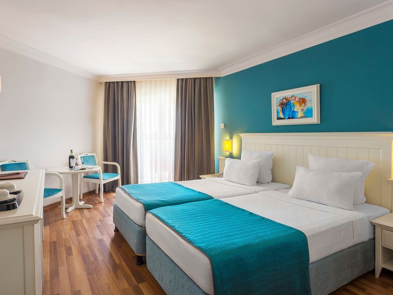 Otelde 233 çift kişilik oda, 37 aile odası toplam 270 odası bulunmaktadır. Odalarda balkon, LCD TV, müzik yayını, direkt telefon, minibar, emanet kasası, merkezi sistem klima, banyolarda saç kurutma makinesi, telefon ve küvet bulunmaktadır. Deniz kenarında bulunan otel, Side'ye 4km, havaalanına 65 km uzaklıktadır.