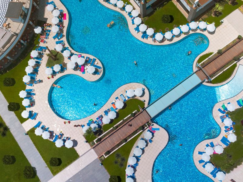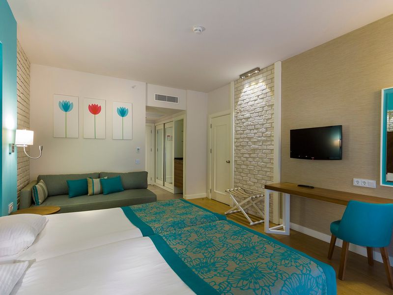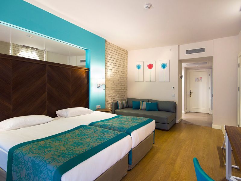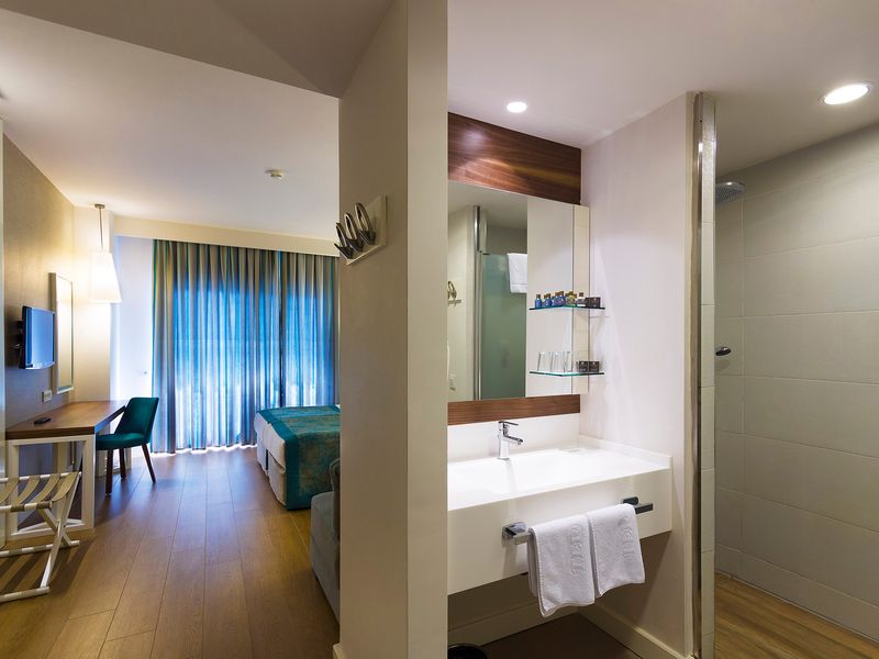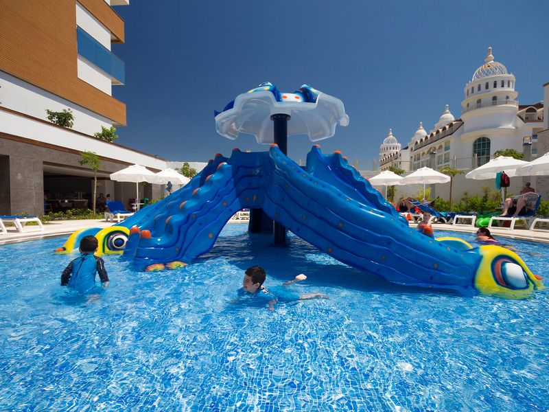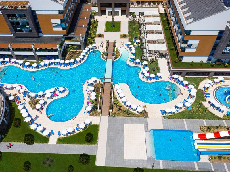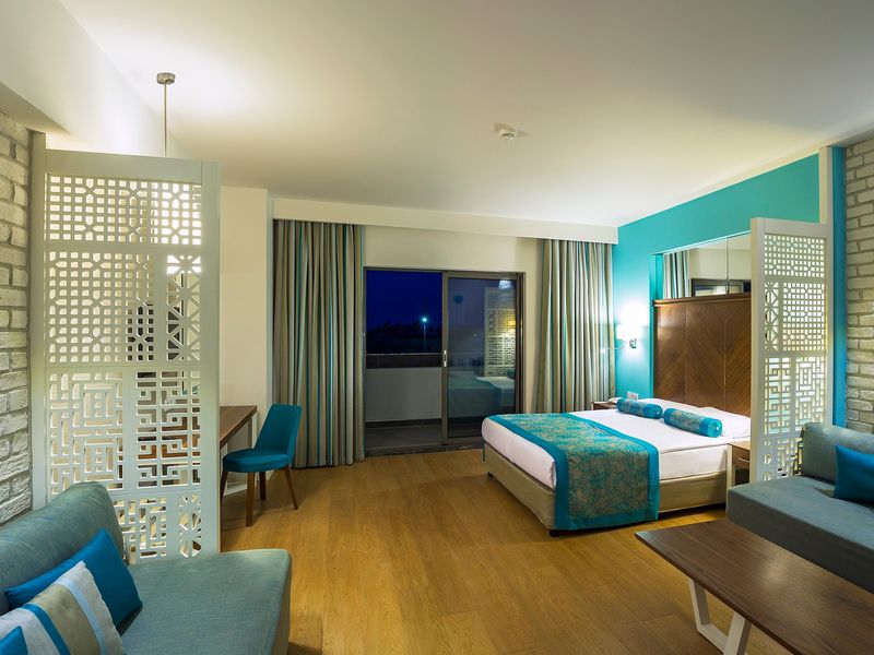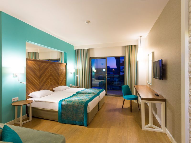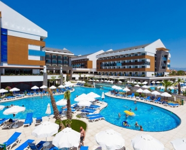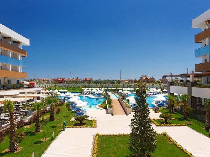 Herbiri beş katlı dört blok’dan oluşan toplam 370 odası var (havuz, deniz ve kara manzaralı). 5 asansör, lobi, ana restoran, 2 A la Carte Restaurant (Minumum 5 gece konaklama süresince birer defa ücretsiz kullanım ), TV salonu, Pastane, Eğlence Merkezi (Internet köşesi, Playstation, bilardo herbiri ücretli ), barlar, disko, yüzme havuzu, su kaydırağı, kapalı yüzme havuzu, Spa & Wellness, ayrı çocuk havuzu, şezlong, sandalye, bir konferans salonu, otel transfer hizmeti (Sahil’e gidiş-dönüş ), Kuru temizleme, çamaşırhane ve ütü, kuaför, mağazalar, sağlık hizmetleri, kablosuz internet lobby’de ücretsiz, diğer mekanlarda ücretli