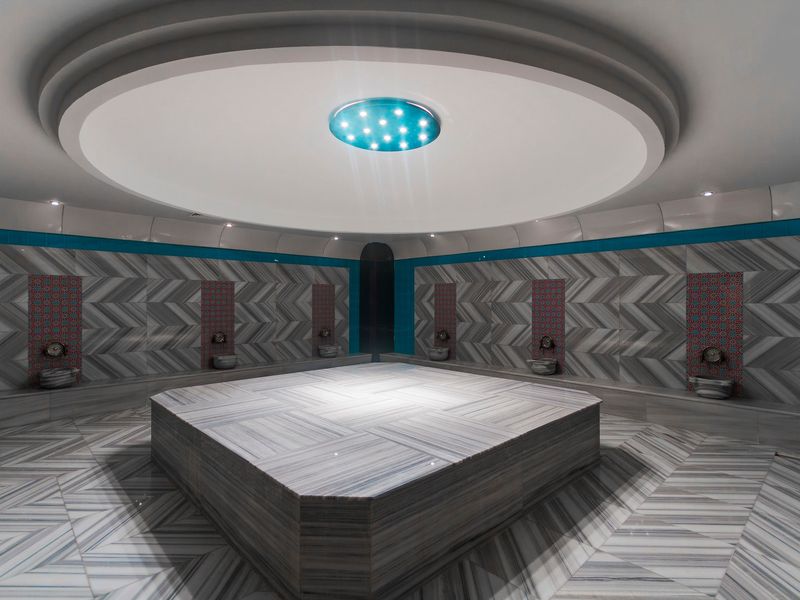 Türk hamamı, buhar banyosu, sauna, Jimnastik salonu , masa tenisi, dart, plaj voleybolu, su aerobik.