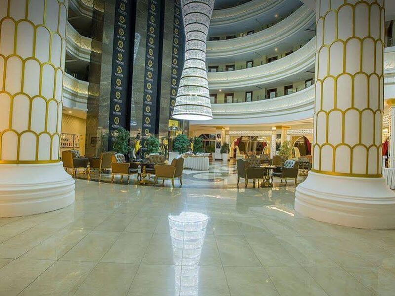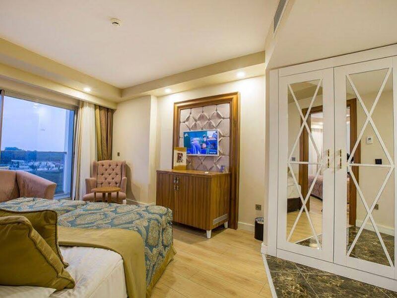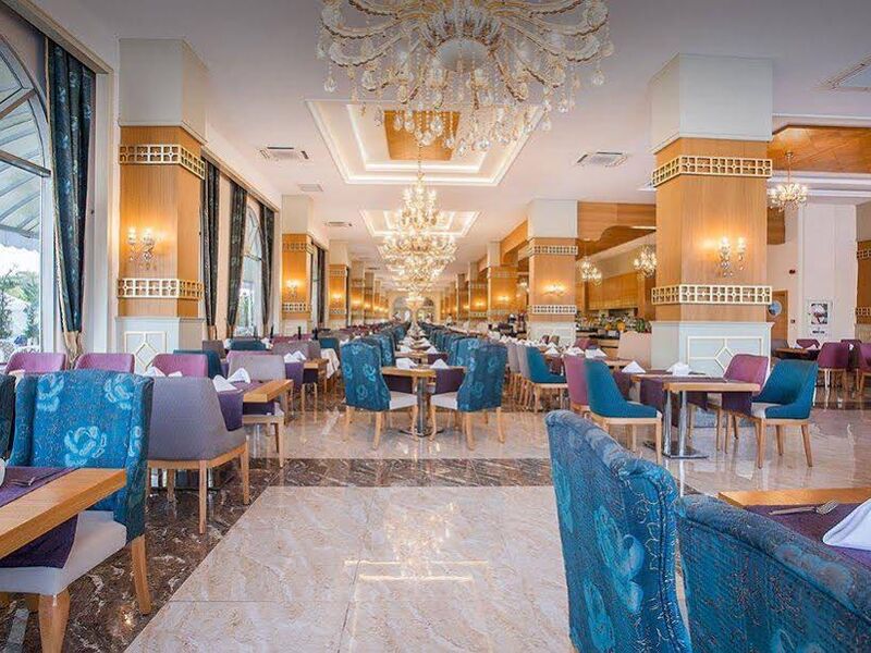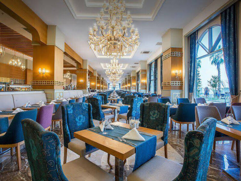 Sabah, öğle ve akşam açık büfe yemekler ücretsizdir. Tesisin belirlemiş olduğu markalar dahilinde yerli alkollü ve alkolsüz içecekler ücretsizdir. 2500 m2 loby alanı ve lobyde 2 adet bar (Loby Bar ve Lounge Bar) hizmet vermektedir.
