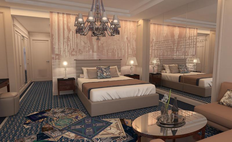 Deluxe Room; 96 adet Max.2 yetişkin+2 çocuk 46-62 m2Twin veya french 1 yatak odası, köşe koltuk veya açılabilir kanepeli oturma alanı, duş ve küvetli banyo.