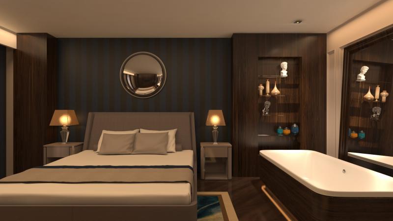 Grand Suite Sea View;8 adet Max.2 yetişkin + 3 çocuk 136-192 m2 Deniz Manzaralı, french Bed yatak odası, 1 adet büyük salon ve açılabilir kanepe. 2 adet duş ve yatak odasında jakuzi. Balkon ve teras.
