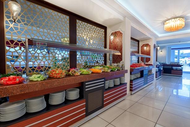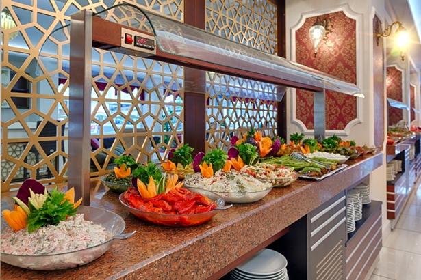 Yarım pansiyon, kahvaltı salonu. lobi bar, snack bar, restaurant bar, Alakart ve açık büfe servis. 600 kişilk açık 300 kişilik kapalı toplam kapasite.Dünya Mutfağı, Türk Mutfağı, Fransız Mutfağı, İtalyan Mutfağı, Vejetaryen Mutfağı mevcuttur.