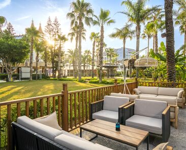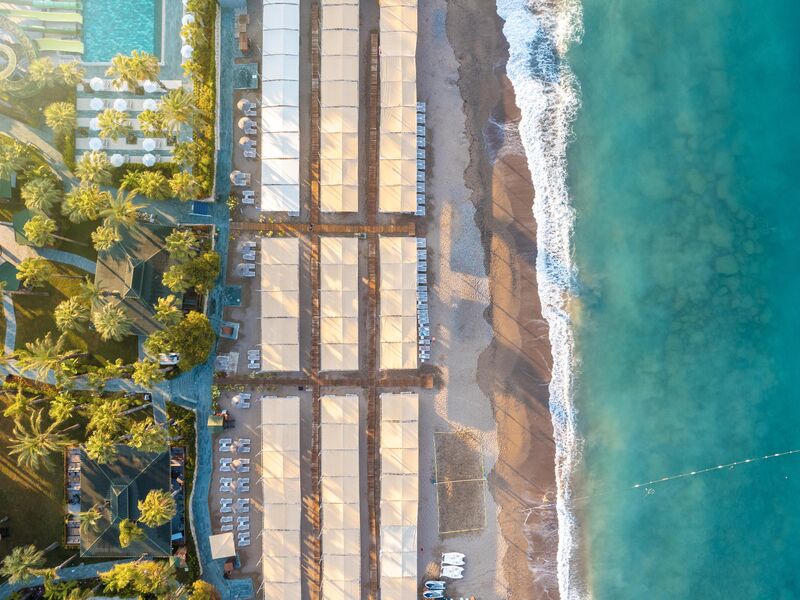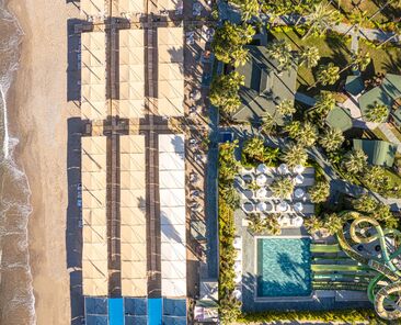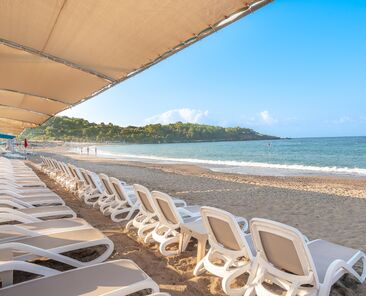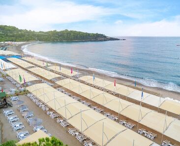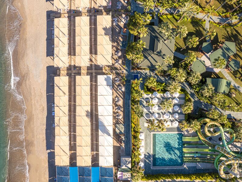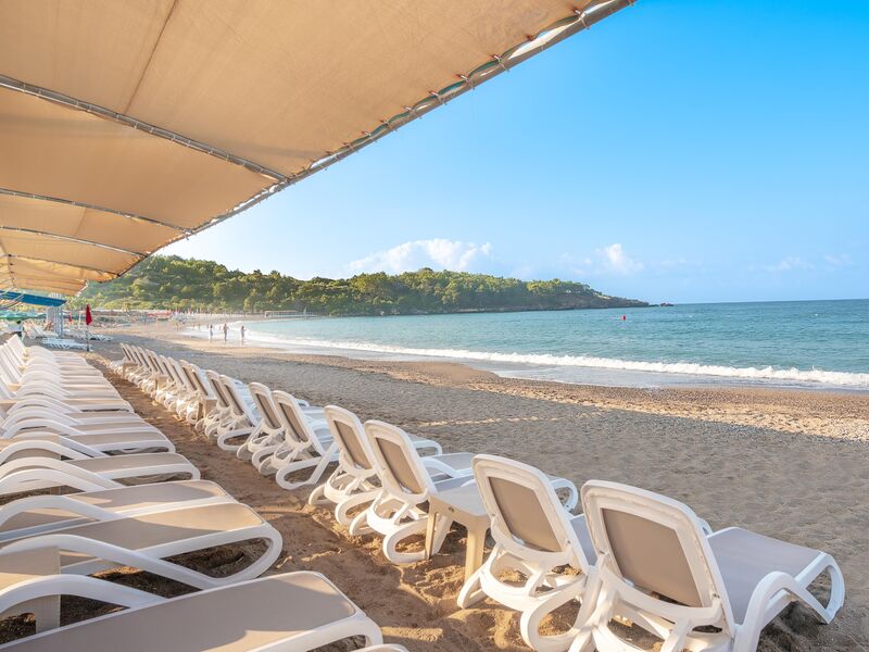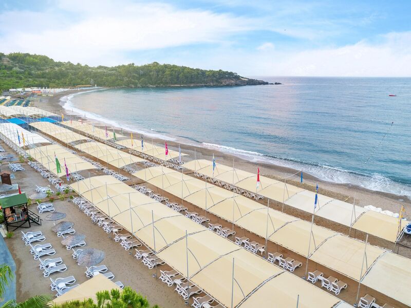 Plajda ve havuz kenarında şezlong ve güneş şemsiyeler ücretsizdir.