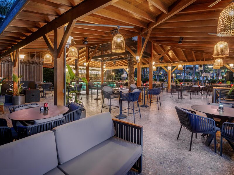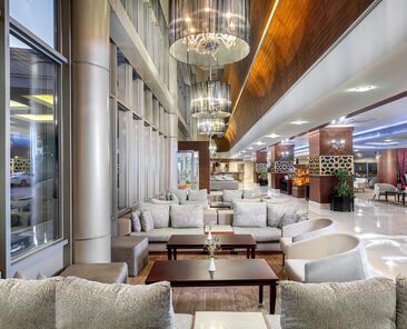 24 Saat açık lobi barda yerli ve yabancı alkollü alkolsüz içecekler ve kokteyller sunulur. Barlarda bira & soft içecekler harici şişe servisleri extra ücretlidir. Snack Bar ve Restoran servis bar da ağır alkollü içkiler sunulmaz.