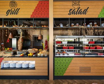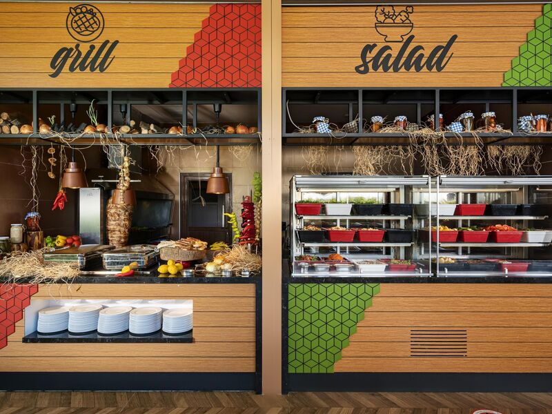 Ana restoranda organik ürünler büfesi, diyet ve glütensiz yemekler büfesi bulunmaktadır. Ayrıca detoks ve taze sıkılmış meyve suları büfesi (kahvaltı esnasında) mevcuttur.