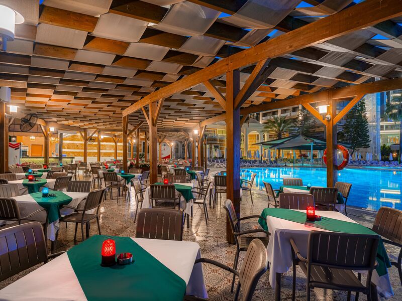 Tema Akşamları: Haftalık dönüşümlü olarak ana Restorantta; Türk Gecesi, Osmanlı Gecesi, İtalyan Gecesi, Texas-Meksika gecesi, Beyaz - Enternasyonal ve de Gala Geceleri konuklarımıza sunulmaktadır.