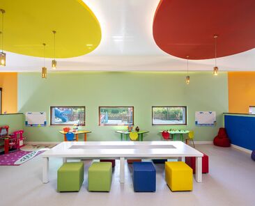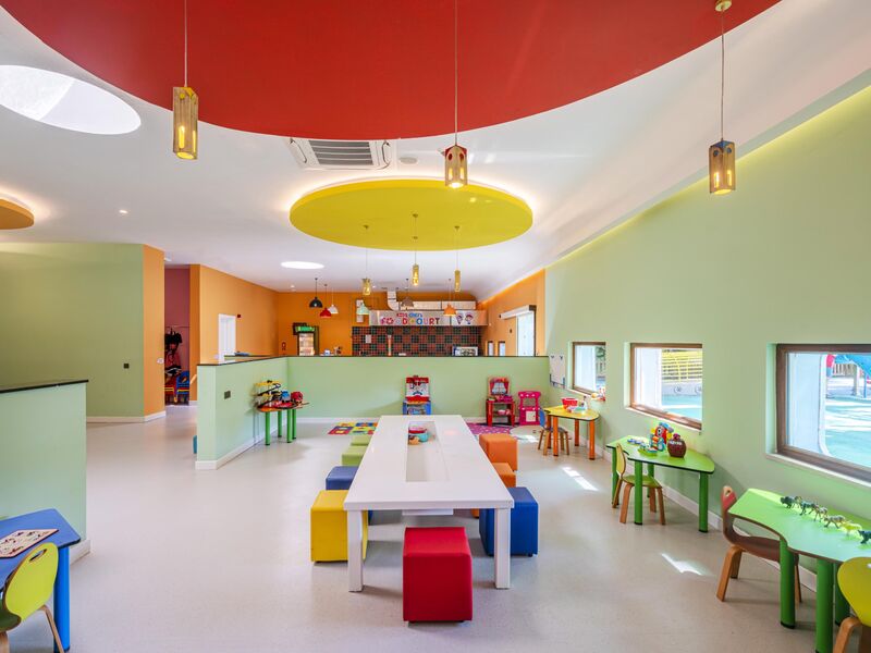 Minik misafirler için gölgeli dış alanda sosyal mesafe kurallarına uyularak özel eğitmenler tarafından hazırlanan oyun ve aktiviteler mevcuttur.Mini Disko TV Köşesi,Alışveriş Çarşısı