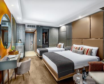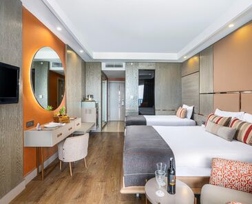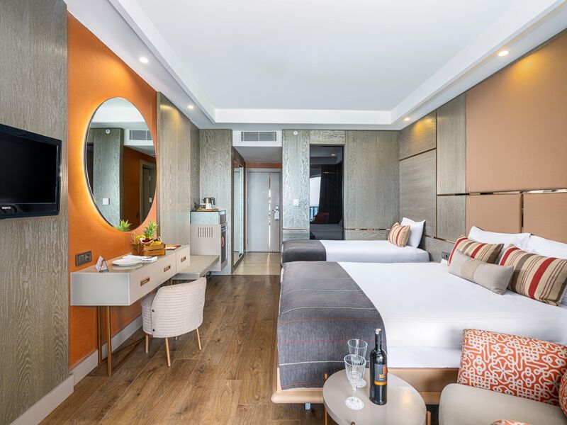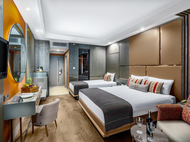 Standart Odaları: 315 adettir. 29 m² genişliğindedir. Max. 2+2/3+1 kişilik konaklamaya uygundur. Bir çift ve bir tek kişilik yatak mevcuttur.