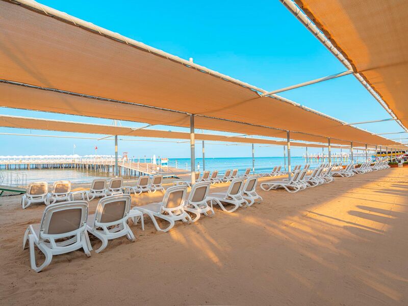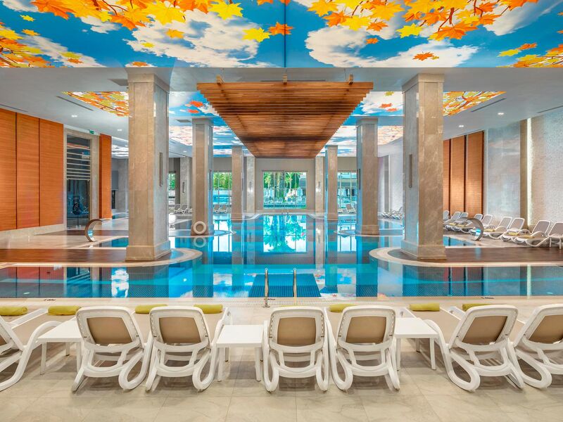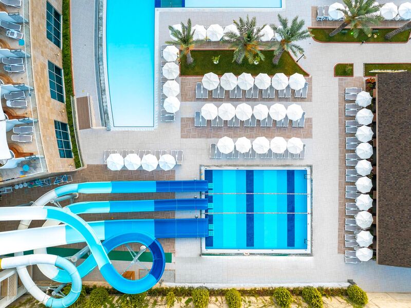 Plaj ve Havuz Bilgisi,Ana Açık Havuz 1360m2 Kaydırak Havuzu (3 Kaydıraklı) 157m2 Yarı Olimpik Havuz 280m2 Ahtapot Çocuk Havuzu 50m2 Kapalı Havuz 190m2 Kapalı Çocuk Havuzu 15m2