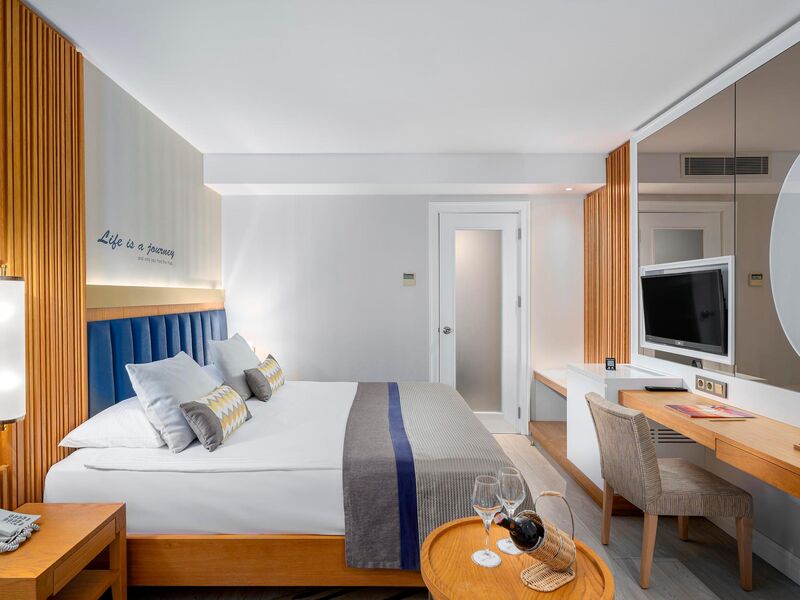 Standart Oda ;Bir Çift Kişilik ve Bir Tek Kişilik Yatak, Balkon, Duş, Wc, Fön, Oda ve Banyoda Telefon, Bornoz, Terlik, Yastık Menü, Dijital Uydu ve LCD Tv, Bebek Yatağı(İsteğe Bağlı), Lamine Parke Zemin, Ücretsiz Kasa, Minibar(Her Gün Bira, Su Ve Alkolsüz İçecekler, Çikolata Ve Cips İle Doldurulur), Su Isıtıcısı(Çay - Kahve Seti), Klima, Ücretsiz Kablosuz İnternet(Wi-Fi), Ücretsiz Günlük Temizlik, Diş Seti, Traş Seti, Tarak, Tırnak Törpüsü, Lif, Makyaj Pamuğu, Duş Jeli, Vücut Losyonu, Duş Bonesi, Sabun, Şampuan, Kulak Pamuğu, Kutu Mendil Mevcuttur.