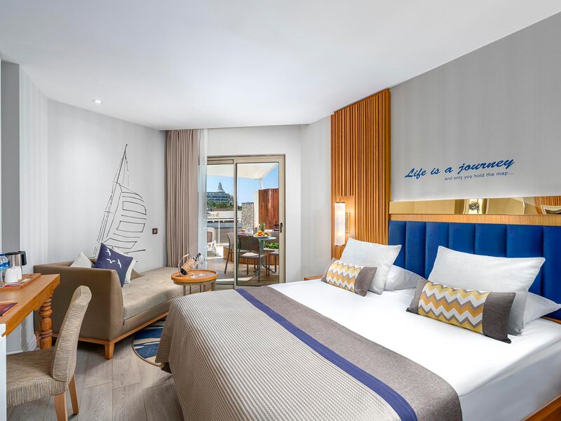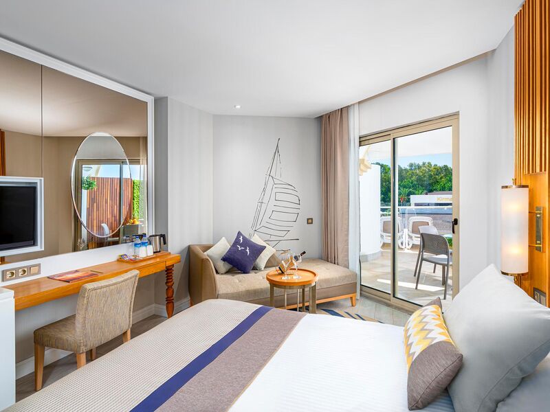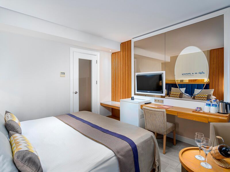 Jakuzi Teras Standart Oda ; Bir Çift Kişilik ve Bir Tek Kişilik Yatak, Balkon, Duş, Wc, Fön, Oda ve Banyoda Telefon, Bornoz, Terlik, Yastık Menü, Dijital Uydu ve LCD Tv, Bebek Yatağı(İsteğe Bağlı), Lamine Parke Zemin, Ücretsiz Kasa, Minibar(Her Gün Bira, Su Ve Alkolsüz İçecekler, Çikolata Ve Cips İle Doldurulur), Su Isıtıcısı(Çay - Kahve Seti), Klima, Ücretsiz Kablosuz İnternet(Wi-Fi), Ücretsiz Günlük Temizlik, Diş Seti, Traş Seti, Tarak, Tırnak Törpüsü, Lif, Makyaj Pamuğu, Duş Jeli, Vücut Losyonu, Duş Bonesi, Sabun, Şampuan, Kulak Pamuğu, Kutu Mendil Mevcuttur.