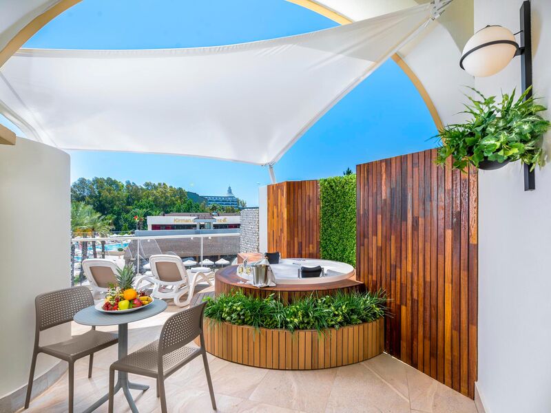 Jakuzi Teras Aile Odası ;Bir Çift Kişilik ve İki Tek Kişilik Yatak, Balkon, Duş, Wc, Fön, Oda ve Banyoda Telefon, Bornoz, Terlik, Yastık Menü, Dijital Uydu ve LCD Tv, Bebek Yatağı(İsteğe Bağlı), Lamine Parke Zemin, Ücretsiz Kasa, Minibar(Her Gün Bira, Su Ve Alkolsüz İçecekler, Çikolata Ve Cips İle Doldurulur), Su Isıtıcısı(Çay - Kahve Seti), Klima, Ücretsiz Kablosuz İnternet(Wi-Fi), Ücretsiz Günlük Temizlik, Diş Seti, Traş Seti, Tarak, Tırnak Törpüsü, Lif, Makyaj Pamuğu, Duş Jeli, Vücut Losyonu, Duş Bonesi, Sabun, Şampuan, Kulak Pamuğu, Kutu Mendil Mevcuttur.